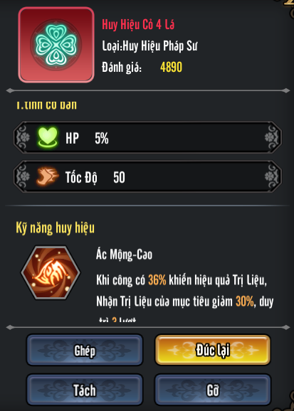 - Cùng với đó, Huy Hiệu Sao cũng nên chú trọng vào các thuộc tính tốc độ, đi kèm với các kỹ năng huy hiệu gây hiệu ứng khó chịu khác như Ác Mộng (Giảm khả năng trị liệu), Băng Sương (Giảm tốc độ đối phương)