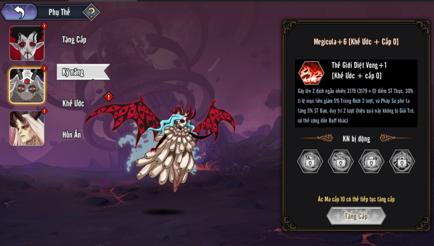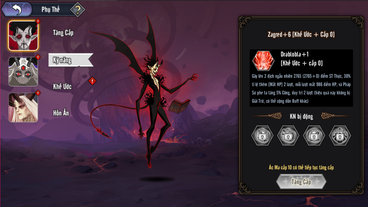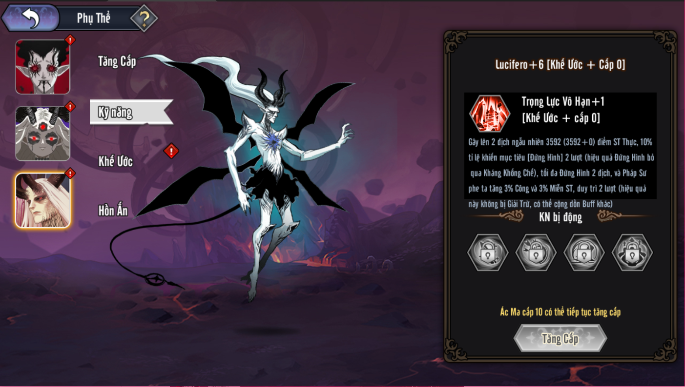 - Gồm 4 phần: Tăng cấp ,Kỹ Năng, Khế Ước, Hồn ấn