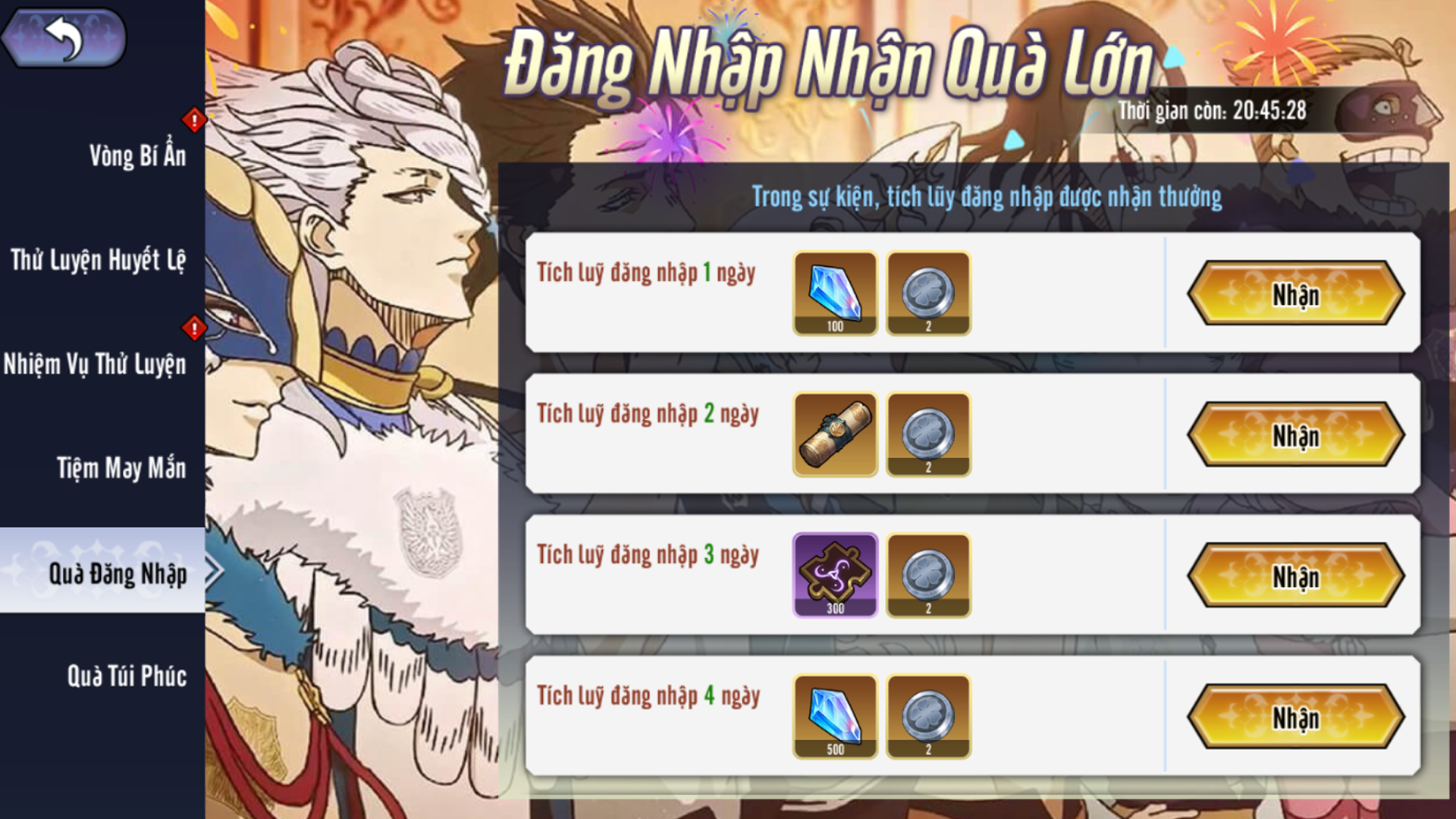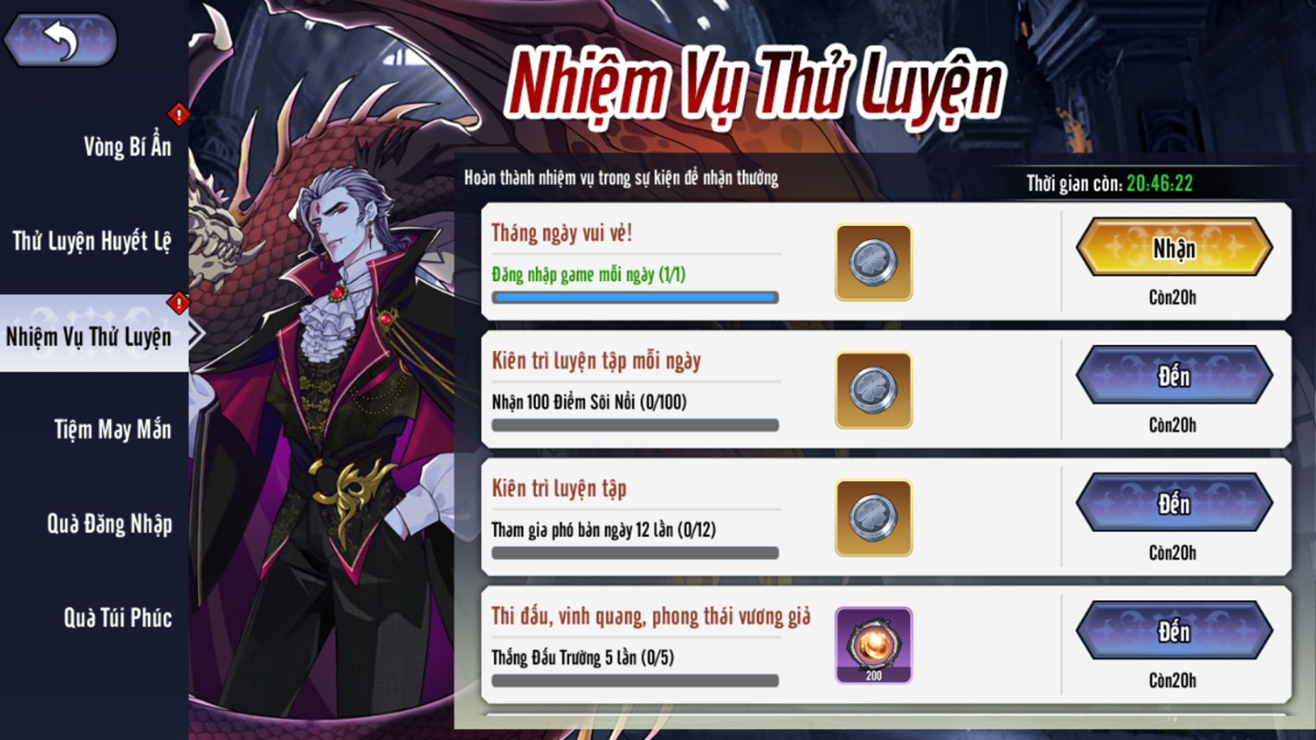 - Hoàn Thành nhiệm vụ để nhận được vật phẩm