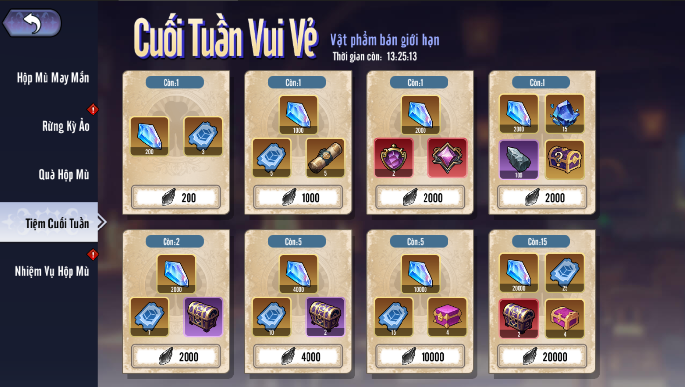 - Làm mới hộp mù tiêu 50 đá ma thuật