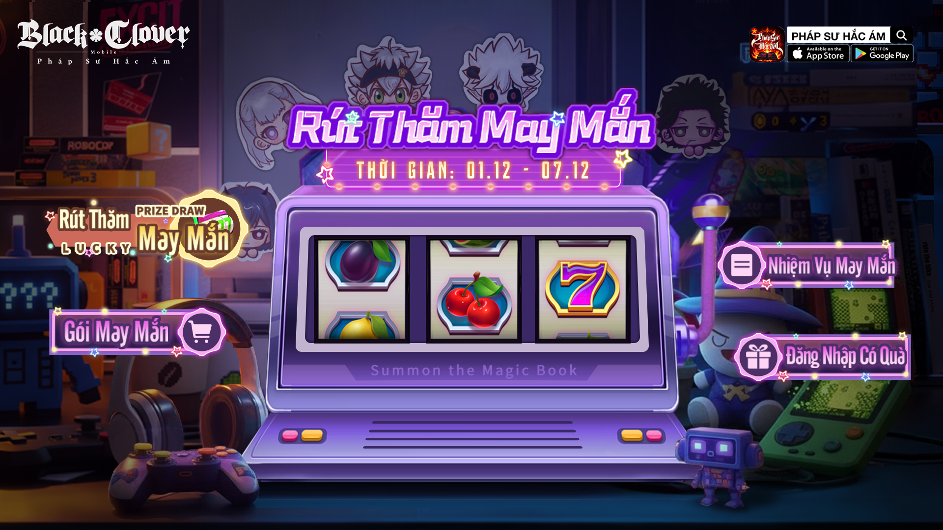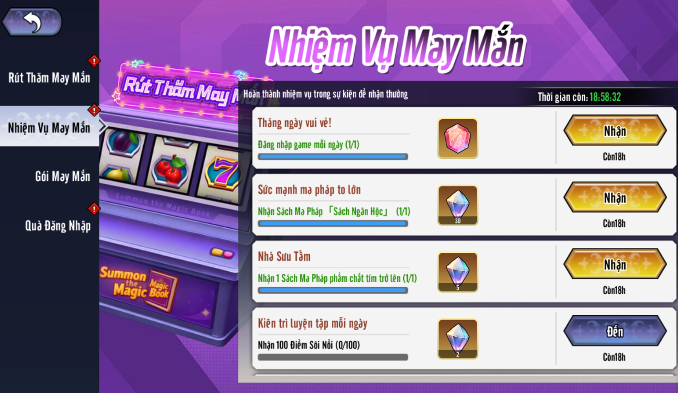 - Rút 10 lần liên tiếp chắc chắn nhận Sách Ma Pháp Tím - có cơ hội nhận Sách Ma Pháp Vàng