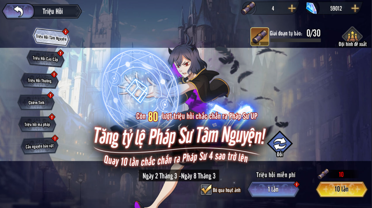 - Triệu hồi đủ 80 lần nhận tướng tâm nguyện
