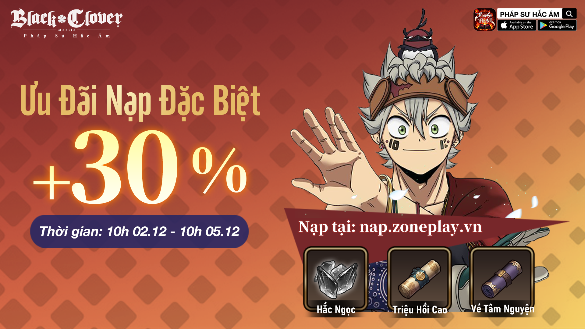 【SỰ KIỆN ĐẶC BIỆT】ƯU ĐÃI NẠP HẮC NGỌC 30%