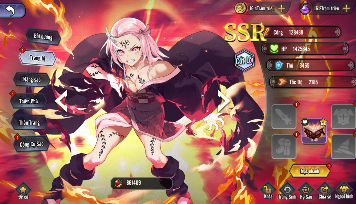 - Lưu ý mỗi phẩm trang bị sẽ nâng đến cấp nhất định
