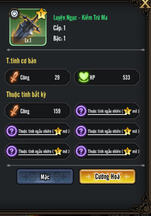 - Cường hóa trang bị giúp nâng sao và mở các thuộc tính bất kỳ ngẫu nhiên